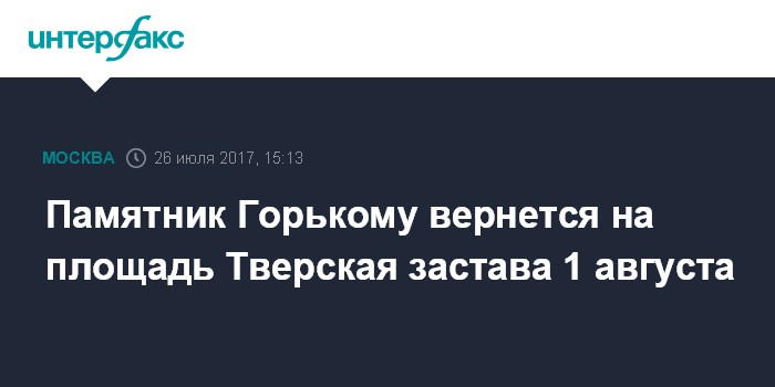 Памятник Горькому вернется на площадь Тверская застава 1 августа