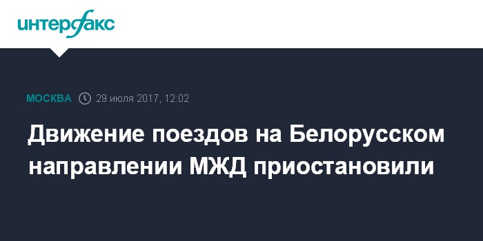 Москва. 29 июля. INTERFAX.RU - Движение поездов на Белорусском направлении Московской железной дороги временно приостановлено в связи с проблемой контактной сети, сообщила в субботу пресс-служба РЖД.