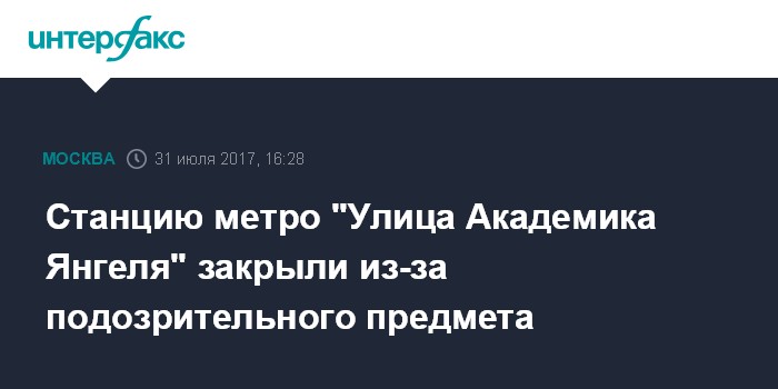 Москва. 31 июля. INTERFAX.RU - Станция Серпуховско-Тимирязевской линии московского метрополитена "Улица Академика Янгеля" закрыта для пассажиров, сообщает корреспондент "Интерфакса".