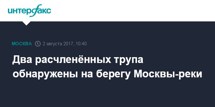 Москва. 2 августа. INTERFAX.RU - Следователи устанавливают обстоятельства гибели двух человек, чьи расчлененные тела были найдены в полиэтиленовых пакетах на берегу Москвы-реки, сообщила старший помощник руководителя Главного следственного управления СК России по Москве Юлия Иванова.
