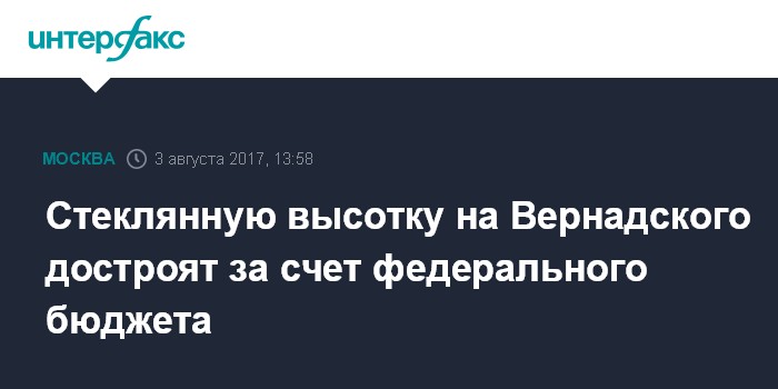 Стеклянную высотку на Вернадского достроят за счет федерального бюджета