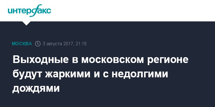 Москва. 3 августа. INTERFAX.RU - Жаркие и по-настоящему летние выходные ждут жителей Московского региона, заявил "Интерфаксу" директор Гидрометцентра России Роман Вильфанд.
