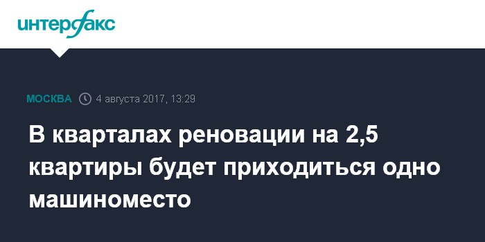 "В ходе программы реновации обеспеченность машиноместами в новых жилых кварталах улучшится по сравнению с сегодняшним положением. Если сегодня в разных районах одно место на парковке на 3,5-7 квартир, то в новых кварталах одно машиноместо будет приходиться на 2,5 квартиры", - сказал Кузнецов. При этом, по его словам, массового строительства новых паркингов не предполагается.