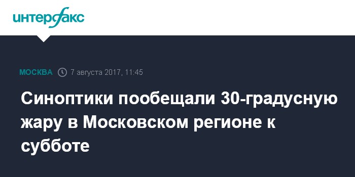 Синоптики пообещали 30-градусную жару в Московском регионе к субботе