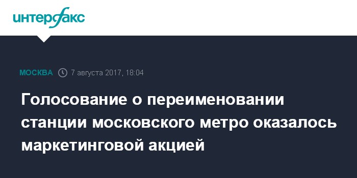 Голосование о переименовании станции московского метро оказалось маркетинговой акцией