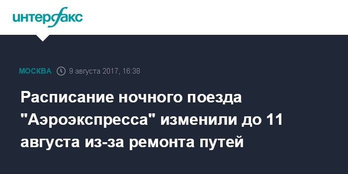 Расписание ночного поезда "Аэроэкспресса" изменили до 11 августа из-за ремонта путей