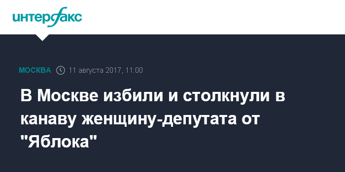 "Вечером 10 августа неизвестные избили действующего депутата района Хамовники Москвы Александру Парушину, после чего столкнули ее в канаву. Парушина была доставлена в НИИ скорой помощи им. Склифосовского с диагнозом сотрясение мозга", - сказали в пресс-службе.