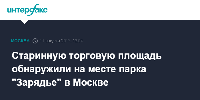Москва. 11 августа. INTERFAX.RU - Археологи обнаружили старинную торговую площадь на месте будущего парка "Зарядье" в Москве, говорится в сообщении на сайте мэра столицы.