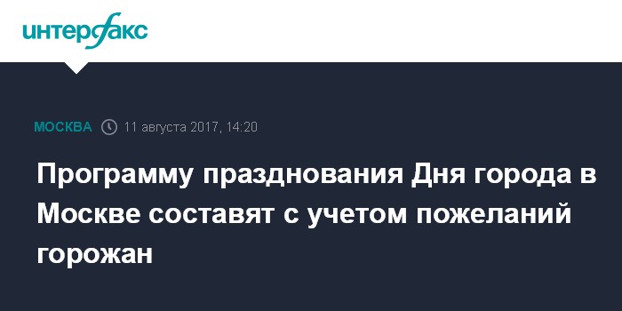 Москва. 11 августа. INTERFAX.RU - Программа празднования 870-летия столицы будет составлена с учетом пожеланий москвичей, завил мэр города Сергей Собянин.