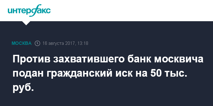 Против захватившего банк москвича подан гражданский иск на 50 тыс. руб.