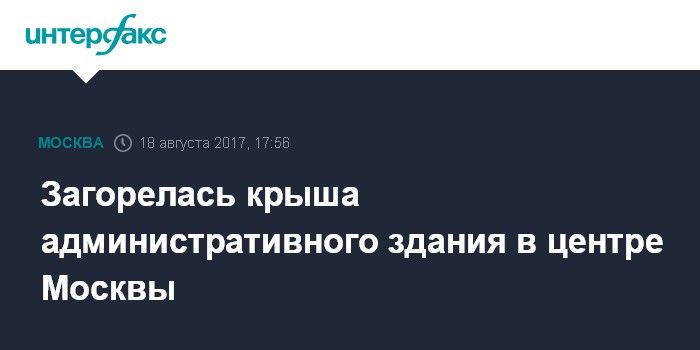 Москва. 18 августа. INTERFAX.RU - Крыша административного здания загорелась в центре Москвы, объявлен второй ранг пожара, сообщил "Интерфаксу" осведомлённый источник.