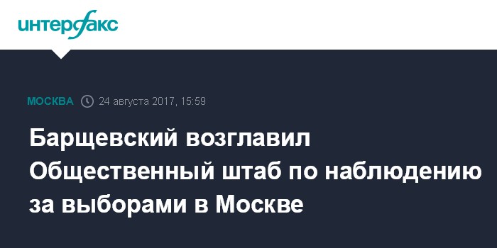 Москва. 24 августа. INTERFAX.RU - В четвертый раз в Москве создан Общественный штаб по наблюдению за выборами, его возглавил полпред правительства России в высших судебных инстанциях Михаил Барщевский, сообщил председатель Мосгордумы Алексей Шапошников.