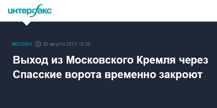 Москва. 30 августа. INTERFAX.RU - Выход посетителей Московского Кремля через Спасские ворота будет закрыт с 4 сентября по 25 октября текущего года. Об этом сообщили в Центре по связям с прессой и общественностью ФСО РФ.