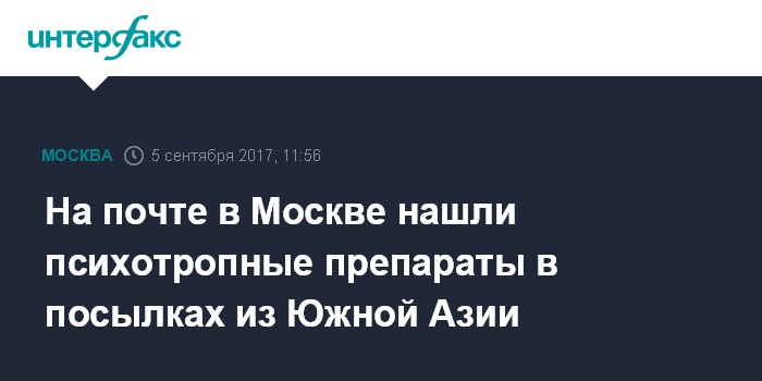 Москва. 5 сентября. INTERFAX.RU - Почта России совместно с МВД и ФСБ пресекла попытку поставки из Южной Азии в РФ психотропных препаратов общей массой свыше 16 кг, сообщили "Интерфаксу" во вторник в пресс-службе предприятия.