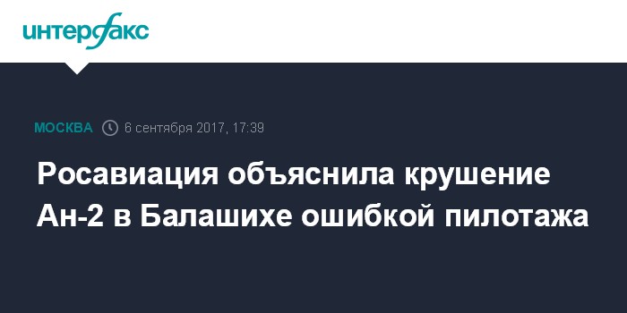 Москва. 6 сентября. INTERFAX.RU -Экипаж самолета Ан-2, разбившегося в выходные в Балашихе, переоценил возможности воздушного судна, сертификат летной годности которого давно истек, сообщает Росавиация.
