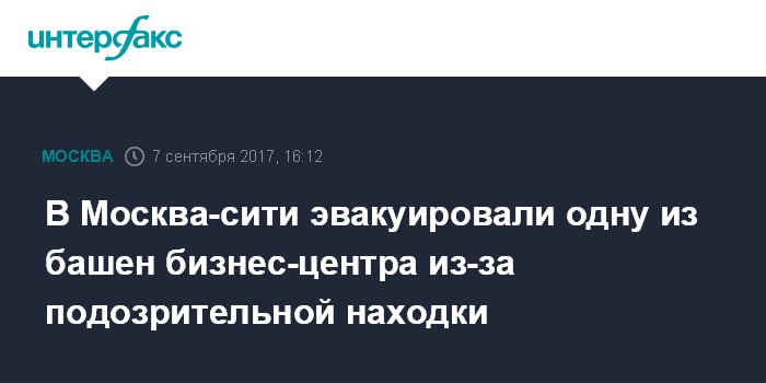 "По адресу Пресненская набережная, 8 строение 1 на первом этаже офисного здания обнаружен подозрительный предмет. Было решено провести эвакуацию",- сказал собеседник агентства.