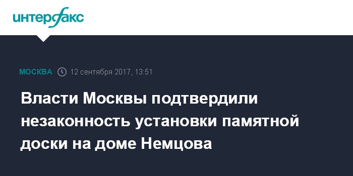 Власти Москвы подтвердили незаконность установки памятной доски на доме Немцова