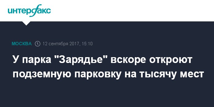 Москва. 12 сентября. INTERFAX.RU - Подземная парковка более чем на тысячу машино-мест вскоре появится у столичного парка "Зарядье", сообщил руководитель департамента капитального ремонта Москвы Алексей Елисеев.