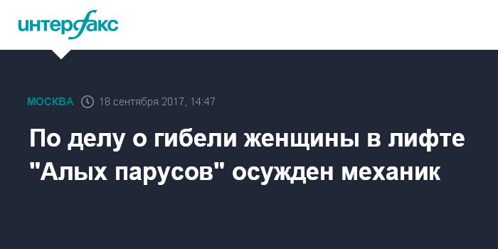 Москва. 18 сентября. INTERFAX.RU - Хорошевский суд Москвы признал виновным и приговорил к 3,5 года колонии общего режима электромеханика Андрея Белоусова по делу о гибели женщины из-за падения лифта в элитном жилом комплексе "Алые Паруса", сообщила "Интерфаксу" пресс-секретарь суда Елена Гуменная.