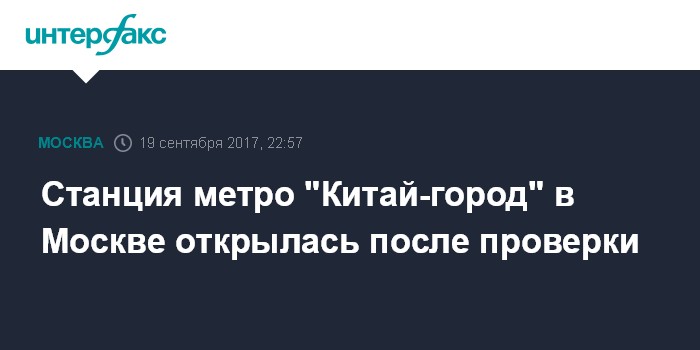 Москва. 19 сентября. INTERFAX.RU - Станция метро "Китай-город" в Москве, ранее закрытая из-за звонка о минировании, работает в штатном режиме, сообщается в твиттере столичного метрополитена.