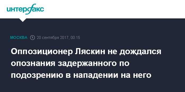 Москва. 20 сентября. INTERFAX.RU - Оппозиционер Николай Ляскин сообщил, что покинул отдел полиции "Мещанское", не дождавшись проведения опознания человека, задержанного по подозрению в нападении на него.