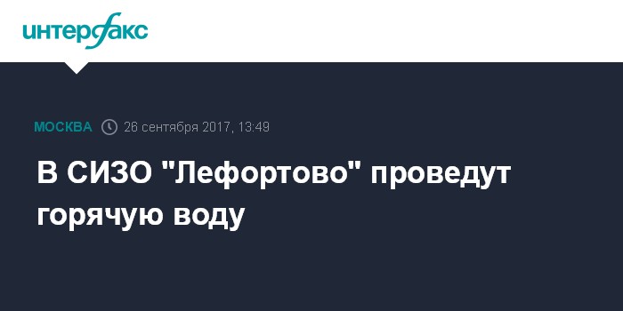 Москва. 26 сентября. INTERFAX.RU - В следственном изоляторе "Лефортово" будет проведена система горячего водоснабжения, которой раньше не было, сообщила уполномоченный по правам человека в Москве Татьяна Потяева.