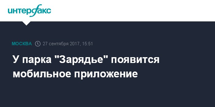 Москва. 27 сентября. INTERFAX.RU - Мобильное приложение парка "Зарядье" будет запущено в ноябре, сообщил директор парка Павел Трехлеб журналистам в среду.