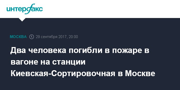 Москва. 29 сентября. INTERFAX.RU - В Москве два человека погибли в результате пожара в вагоне, стоящем на путях в районе Киевского вокзала, сообщил "Интерфаксу" в пятницу информированный источник.