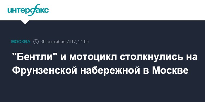 По его словам, авария с участием "Бентли" и мотоцикла марки BMW произошла на Фрунзенской набережной.