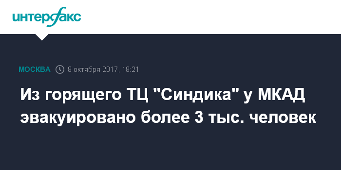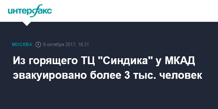 Из горящего ТЦ "Синдика" у МКАД эвакуировано более 3 тыс. человек