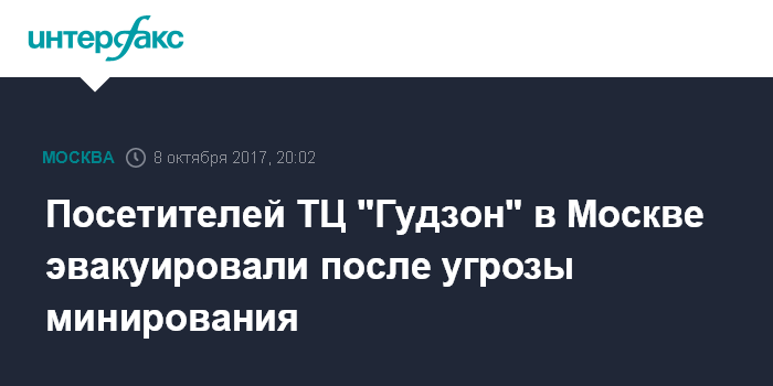Посетителей ТЦ "Гудзон" в Москве эвакуировали после угрозы минирования
