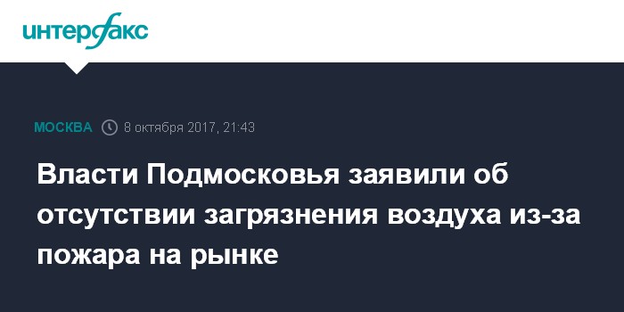Москва. 8 октября. INTERFAX.RU - Специалисты не фиксируют превышение предельно допустимой концентрации (ПДК) вредных веществ в атмосфере Москвы из-за пожара на рынке "Синдика" в Одинцовском районе, сообщил зампред правительства Московской области Дмитрий Пестов.