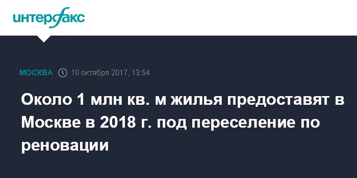 Около 1 млн кв. м жилья предоставят в Москве в 2018 г. под переселение по реновации