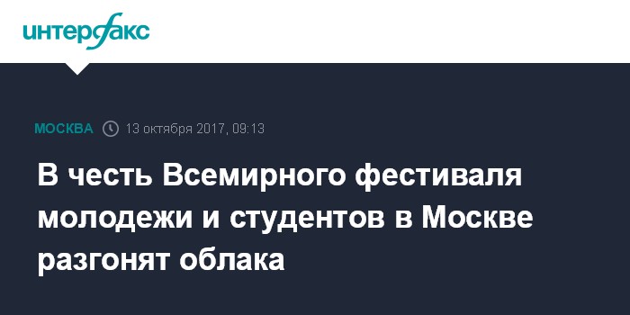 В честь Всемирного фестиваля молодежи и студентов в Москве разгонят облака