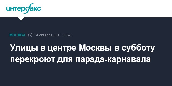 Улицы в центре Москвы в субботу перекроют для парада-карнавала