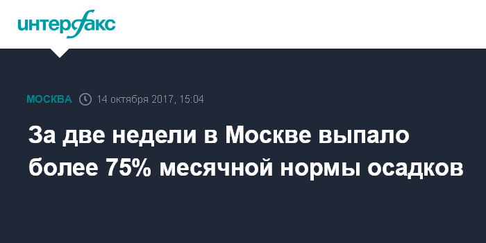 По предварительным данным, всего за две недели прирост осадков на базовой городской метеостанции (ВДНХ) составил 76% месячной нормы, которая в октябре насчитывает 59 мм.