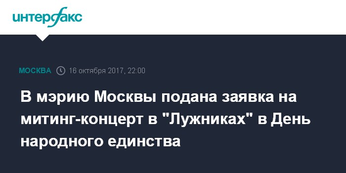 В мэрию Москвы подана заявка на митинг-концерт в "Лужниках" в День народного единства