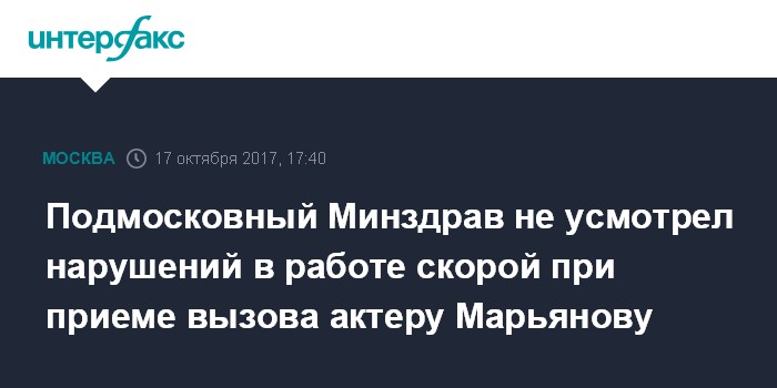 Подмосковный Минздрав не усмотрел нарушений в работе скорой при приеме вызова актеру Марьянову