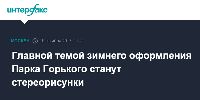 Москва. 19 октября. INTERFAX.RU - Стереорисунки и оптические иллюзии станут главными темами в оформлении катка Парка Горького в этом году, сообщили в четверг в столичной мэрии.
