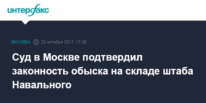 Москва. 20 октября. INTERFAX.RU - Басманный суд Москвы признал законным обыск на складе штаба оппозиционера Алексея Навального по "делу 26 марта", возбужденному после протестной акции в центре столицы.