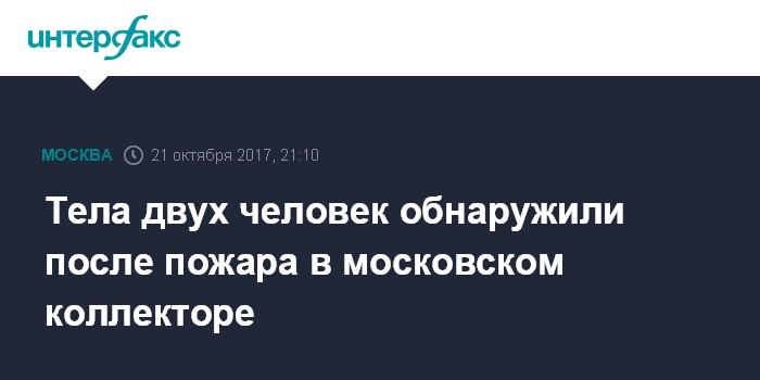 Москва. 21 октября. INTERFAX.RU - Тела двух человек найдены на пустыре в столице после пожара в коллекторе, сообщил "Интерфаксу" осведомленный источник.
