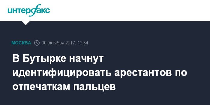 Москва. 30 октября. INTERFAX.RU - Столичное управление Федеральной службы исполнения наказаний покажет во вторник в московском СИЗО-2 ("Бутырка") новое оборудование идентификации заключенных по отпечатку пальца, исключающее вероятность побега под чужой личностью, сообщили в пресс-бюро ФСИН.