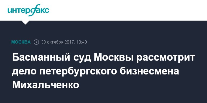 Басманный суд Москвы рассмотрит дело петербургского бизнесмена Михальченко