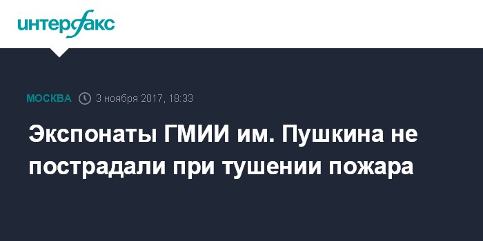 Москва. 3 ноября. INTERFAX.RU - Экспонаты фондохранилища ГМИИ при тушении пожара в музее не пострадали.