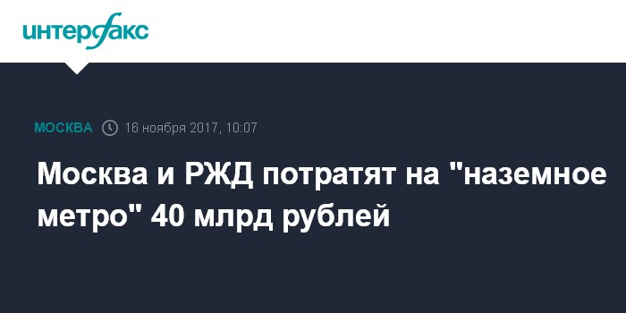 Москва и РЖД потратят на "наземное метро" 40 млрд рублей