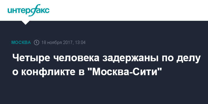 Москва. 18 ноября. INTERFAX.RU - Следственный комитет сообщает о четверых задержанных по подозрению в участии в конфликте со стрельбой в комплексе "Москва-Сити", произошедшем накануне.