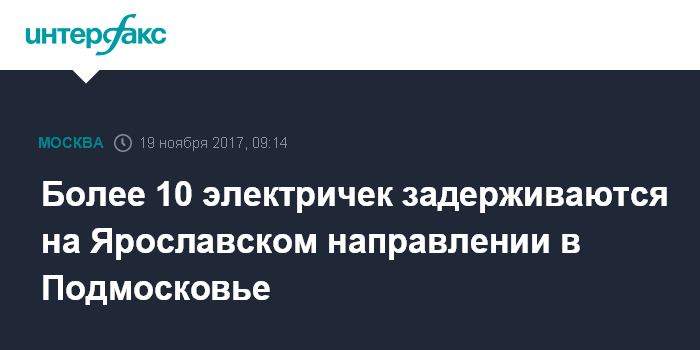 Москва. 19 ноября. INTERFAX.RU - Более 10 электропоездов задерживается на Ярославском направлении железной дороги, сообщает в воскресенье Центральная пригородная пассажирская компания (ЦППК).
