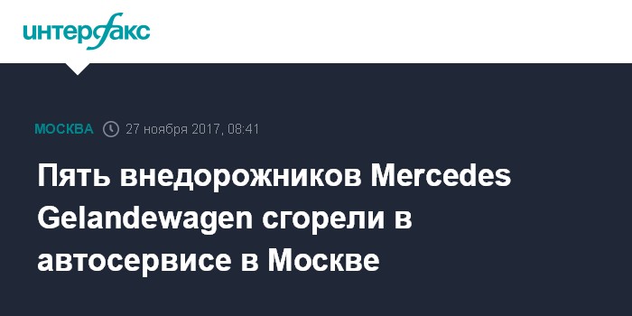 Москва. 27 ноября. INTERFAX.RU - Пять автомобилей Mercedes Gelandewagen сгорели накануне в автосервисе на западе Москвы, сообщили "Интерфаксу" в пресс-службе столичного главка полиции.