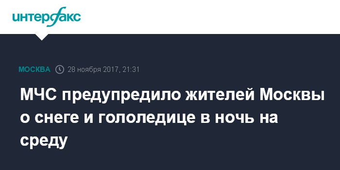Москва. 28 ноября. INTERFAX.RU - В Москве в ночь на среду ожидается снег и гололедица, сообщает пресс-служба столичного МЧС.