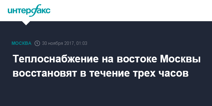 Теплоснабжение на востоке Москвы восстановят в течение трех часов